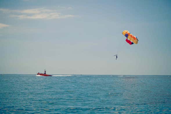 Once we arrive at the beach, we'll give you a brief introductory talk about the activity we're about to do. We'll then get on the speedboat ready to start our Sharm el-Sheikh parasailing experience.